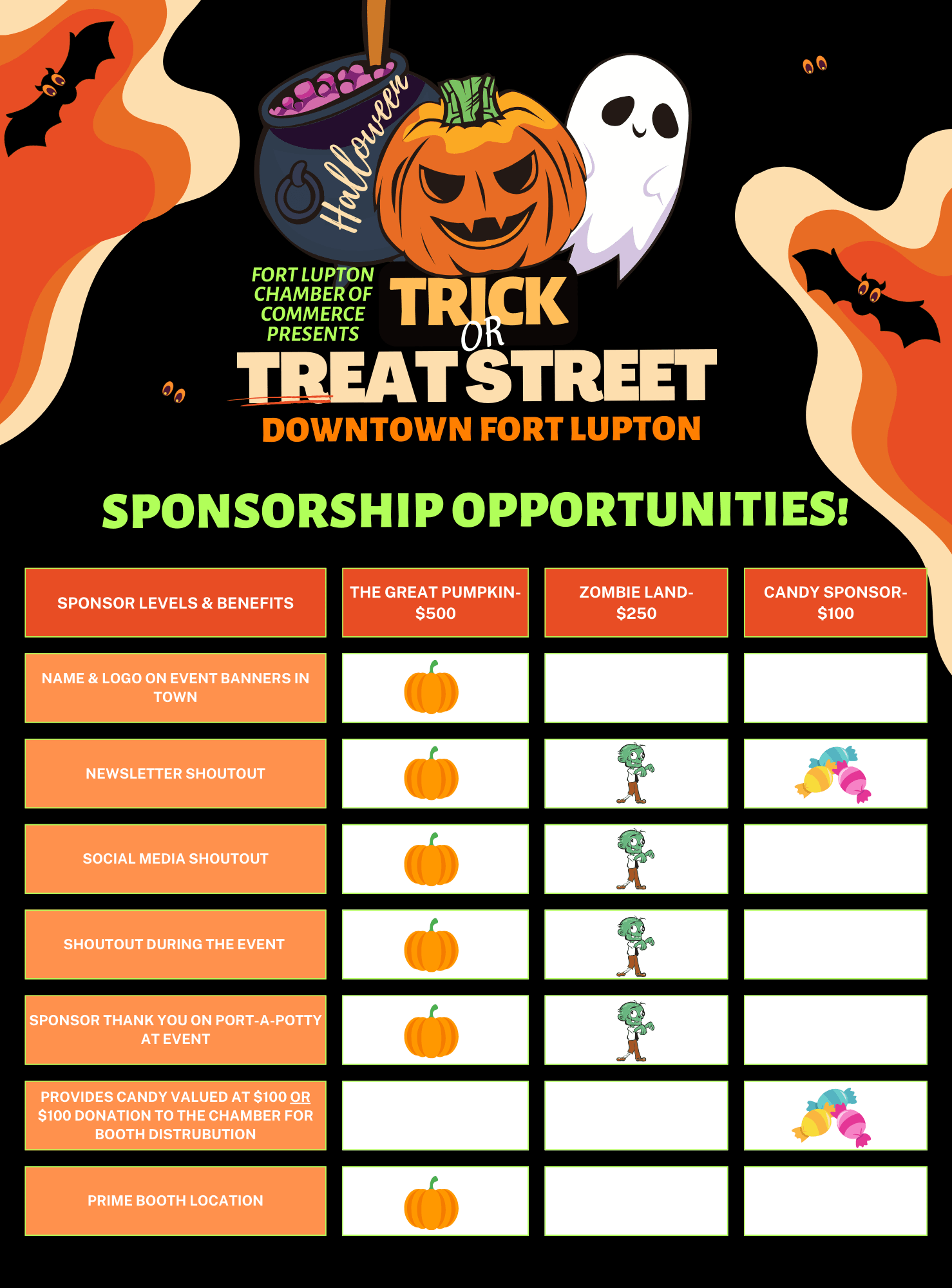 Reach out directly to Allison at ExecutiveDirector@FortLuptonChamber.org for more details on how you can get involved. Let’s make this Halloween the best one yet!