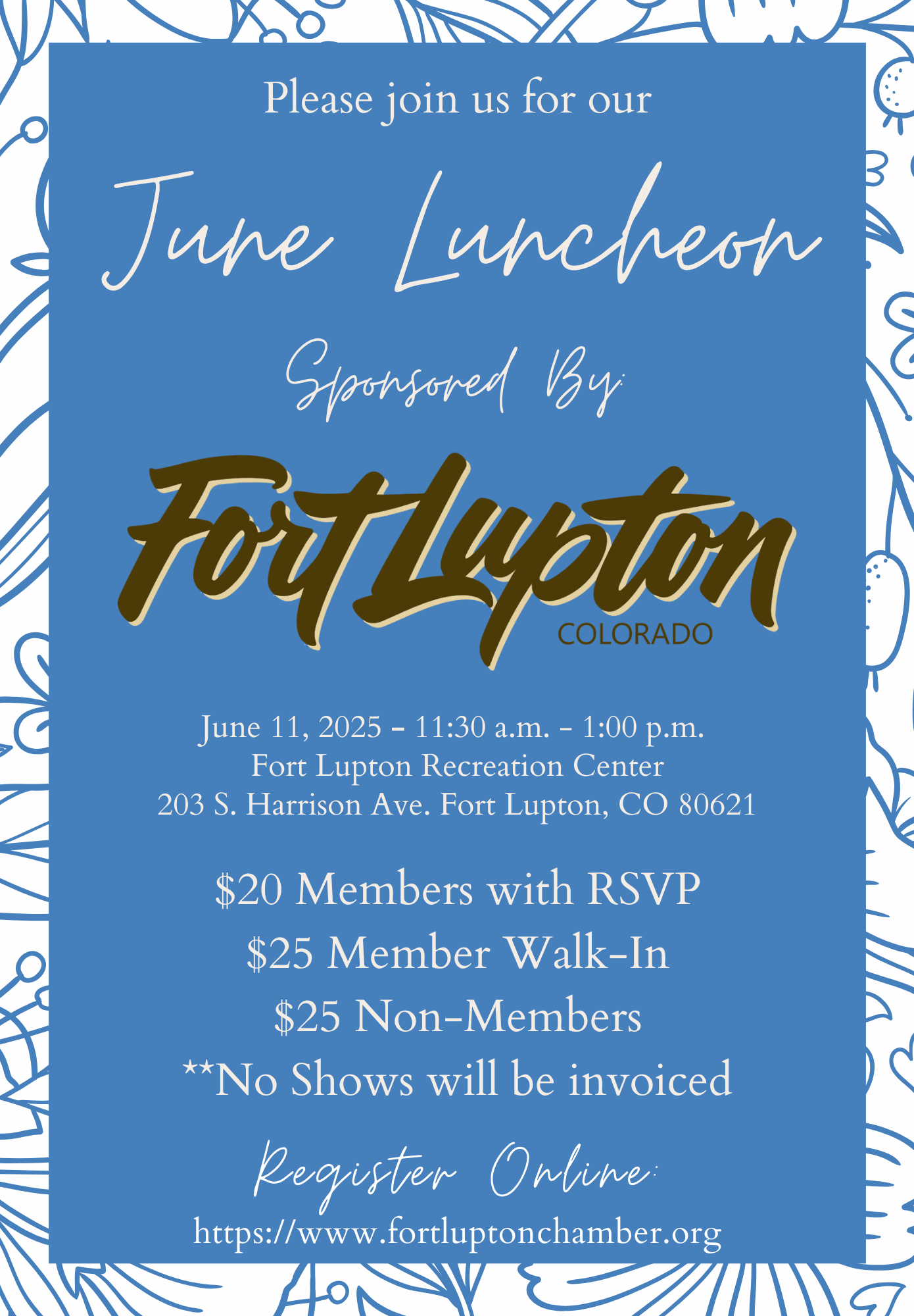 Join us for our June Chamber Luncheon Hosted by the Fort Lupton Recreation Center and Sponsored by City of Fort Lupton. Register now to RSVP for your meal!