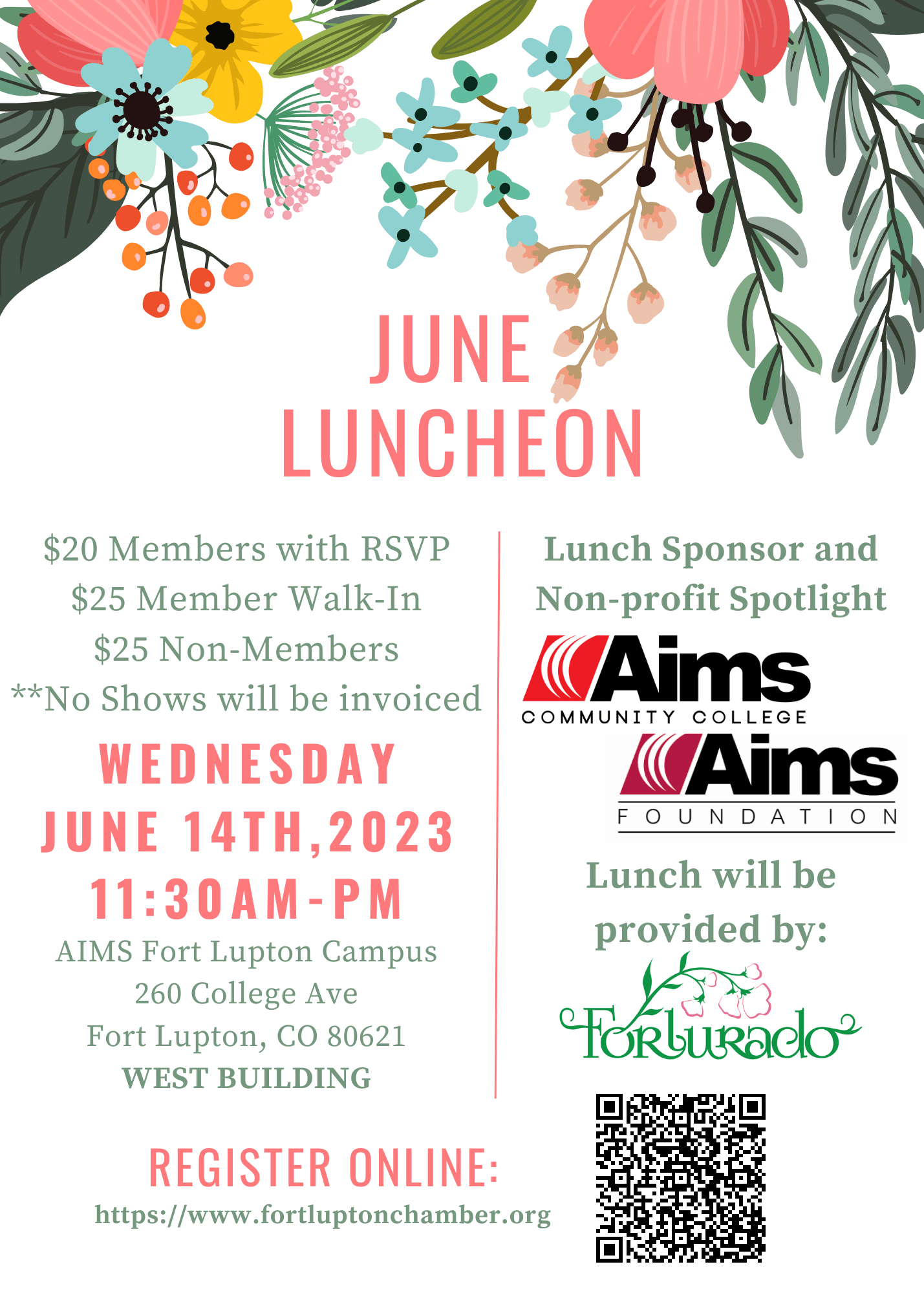 Join us for the June Luncheon hosted and sponsored by Aims Community College, with food provided by Forlurado!